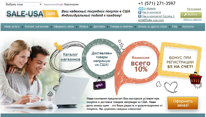 Sale-usa.com — сайт, принадлежащий одноименной компании, зарегистрированной в Джэксонвилле(Флорида). Компания занимается выкупом и доставкой товаров из американских интернет-магазинов жителям России и СНГ. Также на сайте присутствуют товары в наличии. Посредник работает с 2011 года.